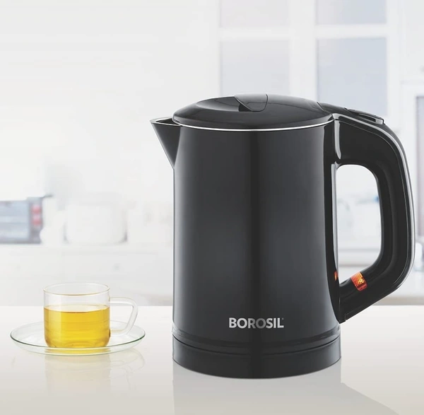 Borosil EVA Cool Touch 600ml Stainless Steel Kettle, Black