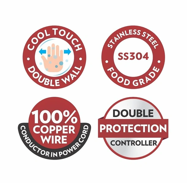 - High quality thermostat for fast and safe heating. Max- Min markings make it easy to fill just right amount of water.