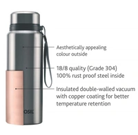 - Double walled vacuum insulated with copper coating for maximum temperature retention