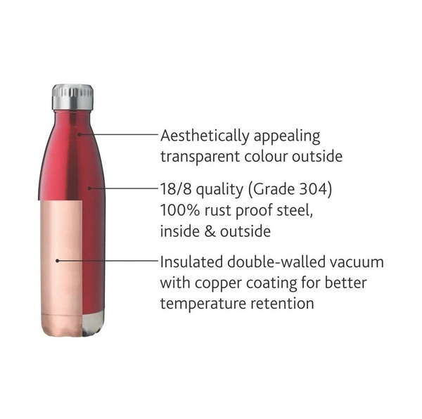 Borosil TRANS BOLT 500 ml Stainless Steel- Vacuum Insulated Flask Water bottle, Red