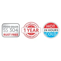 - Insulation type: Double wall; Temperature retention: Yes (Keeps liquid hot/cold up to 24 hrs. hot n cold); Leak proof: Yes