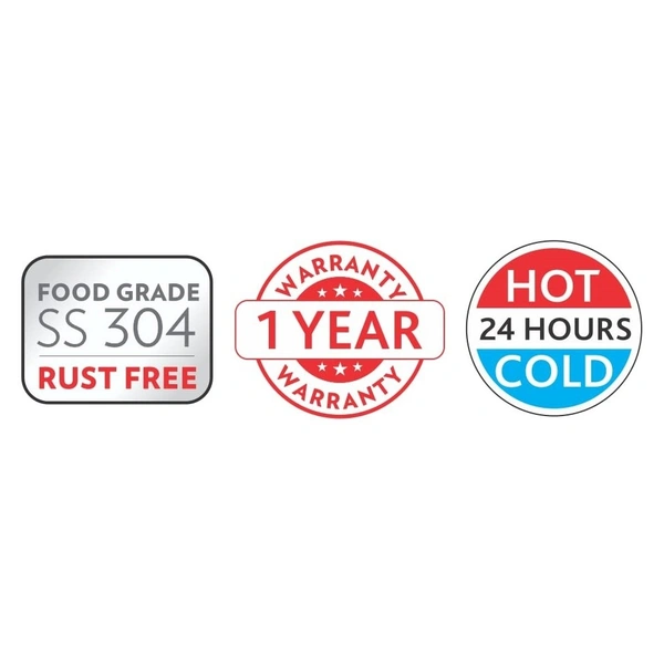 - Keeps water or beverage hot up to 24 hours and cold up to 24 hours